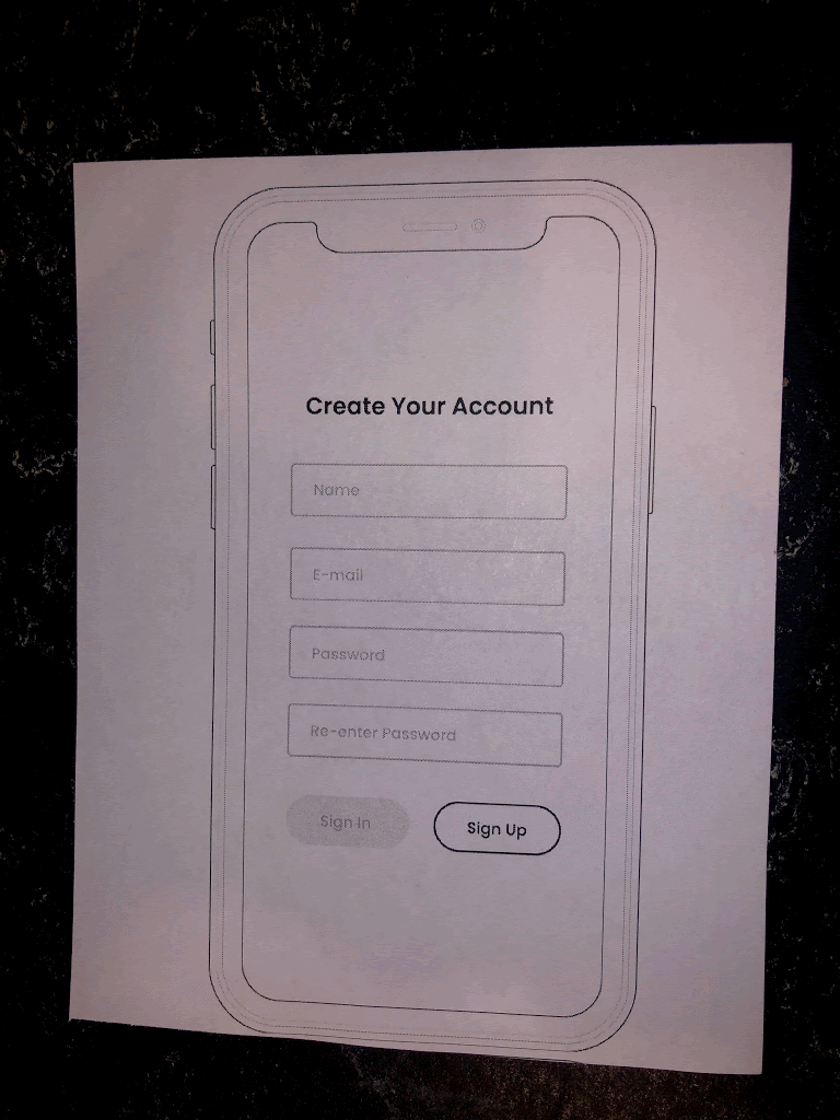 Our team printed out low fidelity screens in order to conduct user testing with our paper prototype. This user-centered design method allowed us a low-cost and time efficient way to ensure our product is meeting user needs. Because of its simplicity, it also allowed for non-designer and non-technical users to interact with it.