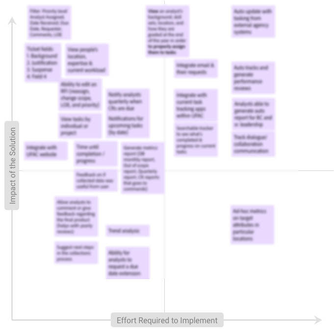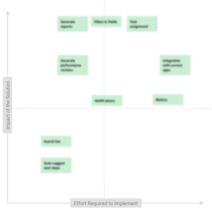 To prioritize features, I categorized Potential Feature Requirements into a map that shows the impact the feature would make on the application and the effort it takes to develop it. This required feedback from users and conversations with developers.